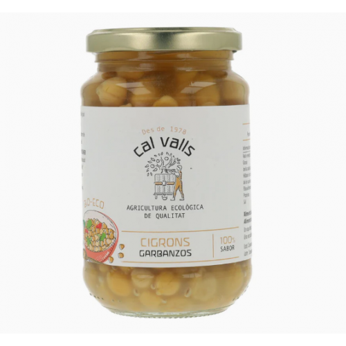 Garbanzos Cocidos Eco de Cal Valls garbanzos cocidos ecológicos listos para comer. Indicados para ensaladas, salteados, guarniciones, guisos, hummus.