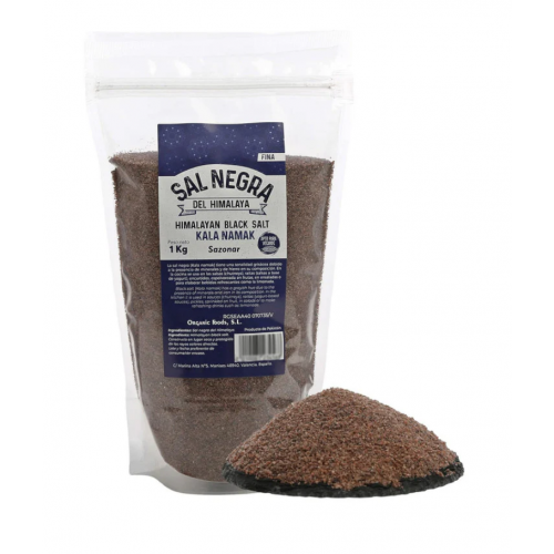 La sal negra, también conocida como “Kala Namak” tiene una tonalidad grisacea debido a la presencia de minerales y de hierro. Muy utilizado en la cocina vegana por la gran similitud en su sabor al del Huevo frito.